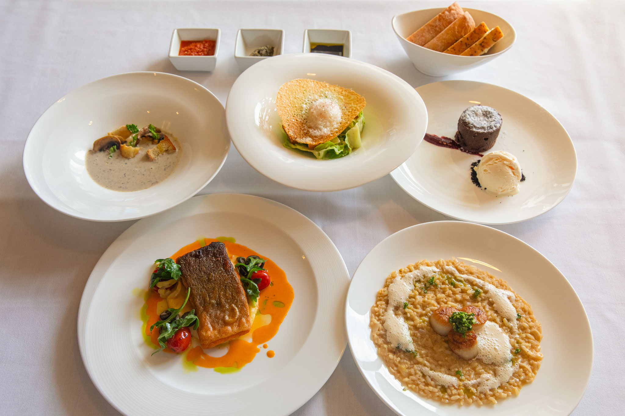 サフラン風味リゾット(グリルホタテ、サルサヴェルデ、ロブスタークリームフォーム)